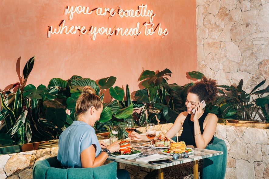 Με το που άνοιξε η πόρτα, βρεθήκαμε σε δροσερό χώρο με ξεκάθαρα ινσταγκραμική διακόσμηση και σημεία που σε τραβούν να βγάλεις άπειρες φωτογραφίες για τα social σου. Ποιος δεν θα ήθελε να φωτογραφηθεί με το ποτό του σε μία μαγευτική κούνια ή με φόντο catchy μηνύματα σε ροζ νέον ή ενώ απολαμβάνει ένα γλυκό δίπλα σε ένα διακοσμημένο με λουλούδια σιντριβάνι, ακόμη και να αποθανατιστεί με φτερά αγγέλου πίσω του;