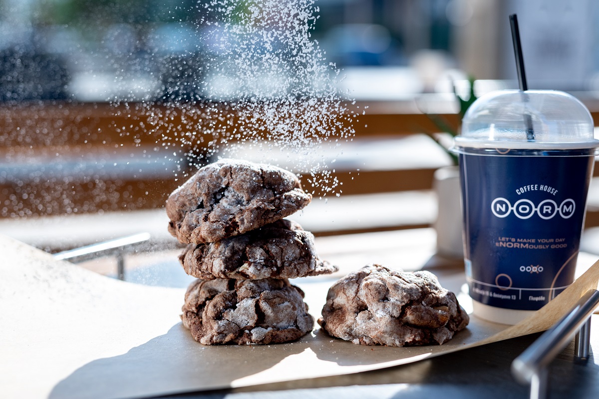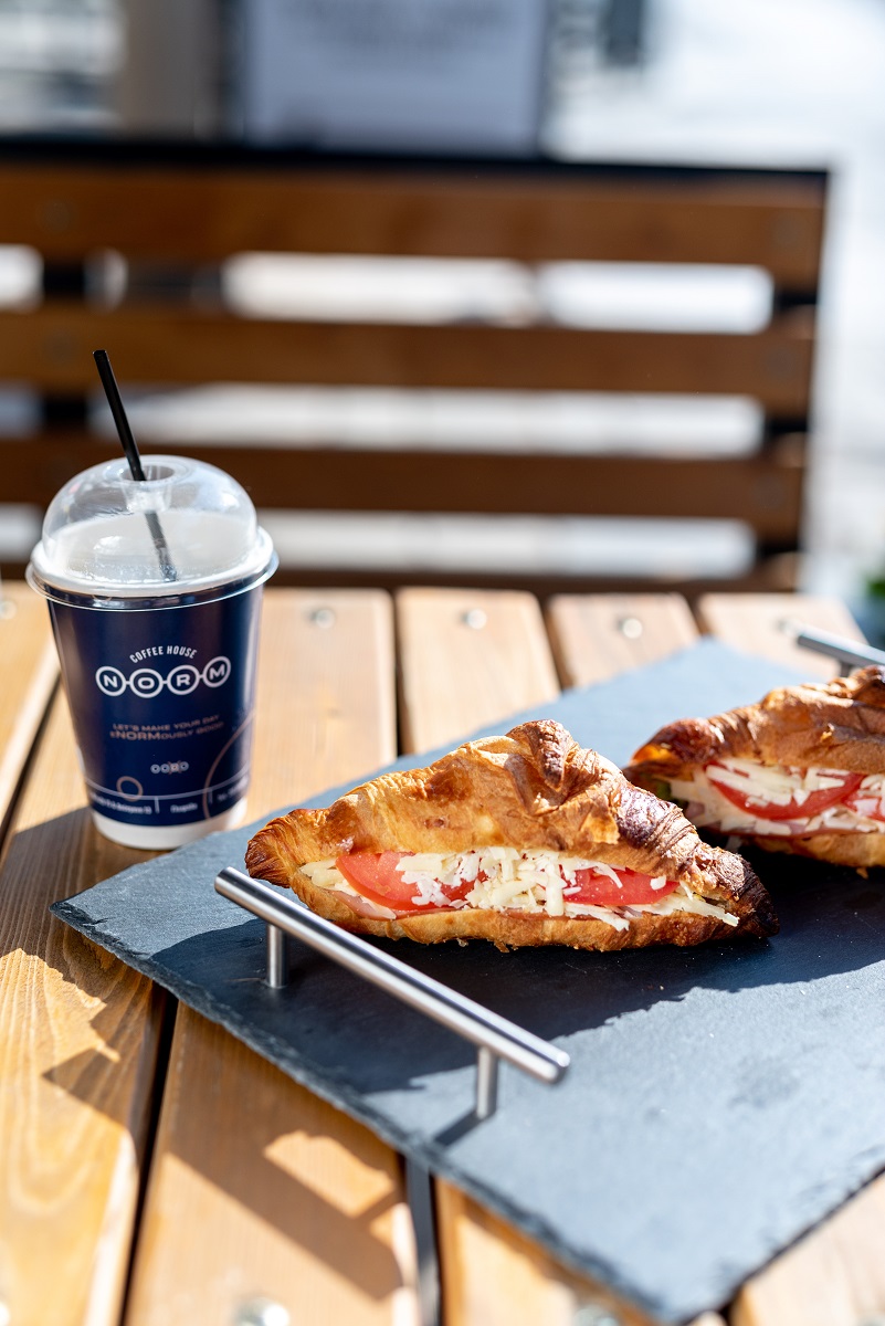 Ωστόσο εκτός από τον καφέ, εδώ θα βρεις ξεχωριστές προτάσεις για πρωινό και brunch. Θα δελεαστείς από την ποικιλία γλυκών και αλμυρών snacks, όπως bagel σολομού, μπαγκέτα με κοτόπουλο, σάντουιτς χαρουπιού με γαλοπούλα φουαντρέ και γουακαμόλε, κρουασάν, υγιεινές χειροποίητες μπάρες δημητριακών με χαμηλές θερμίδες, muffins και πεντανόστιμα cookies από την εταιρεία Milk & Cookies. Οι αλμυρές και γλυκές απολαύσεις ανανεώνονται και εμπλουτίζονται συχνά με καινούργιες. Όμως το καλοκαίρι είναι εδώ, και στον δρόμο για τη θάλασσα, μια στάση στο Norm Coffeehouse για «εφοδιασμό» αποτελεί σίγουρη επιλογή.