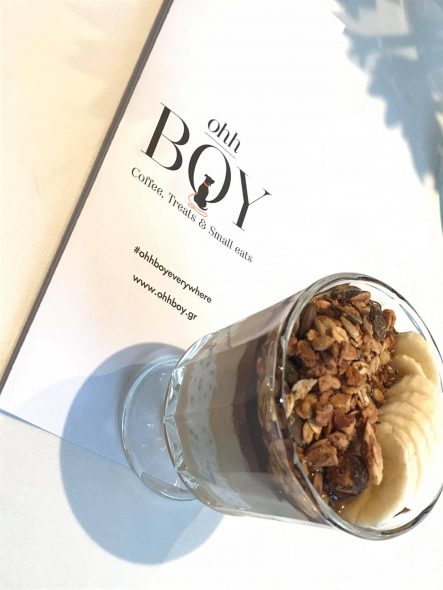 Ο χώρος του αποπνέει φρεσκάδα και καθαριότητα και θυμίζει κάτι ανάμεσα σε ελληνικό νησί και σκανδιναβικό cafe. Το λευκό κυριαρχεί παντού ενώ η τζαμαρία του αφήνει άπλετο φως να μπαίνει μέσα. Είτε κάτσεις μέσα, είτε διαλέξεις ένα από τα πανέμορφα τραπεζάκια πάνω στο πεζοδρόμιο, θα νιώσεις σίγουρα την ιδιαίτερη αύρα του. Μπορείς να παραγγείλεις από νωρίς τον καφέ σου και να τον απολαύσεις διαβάζοντας το βιβλίο σου ή δουλέυοντας με τον υπολογιστή σου. Στον κατάλογο θα βρεις και πιο ιδιαίτερες επιλογές όπως Matcha Latte Ζεστό, Turmeric Coconut Coffee ή Holy Ginger ζεστό. Αμέσως ψιλιάζεσαι ότι το Ohh Boy δεν είναι ένα ακόμα καφέ της πόλης. Αν λόγω καιρού προτιμάς κάτι πιο δροσιστικό τότε έχει αρκετές επιλογές σε χυμούς όπου και ξεδιπλώνεται ο ιδιαίτερός του χαρακτήρας.