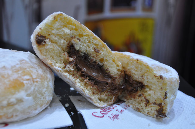 Σε κερδίζει: Από την παράδοση που το συνοδεύει. Τα πρώτα αμερικάνικα donuts που έμαθε ο Έλληνας δεν είχαν τρύπα στη μέση. Ήταν έτσι υπέροχα πασπαλισμένα με άχνη και γέμιση σοκολάτα.