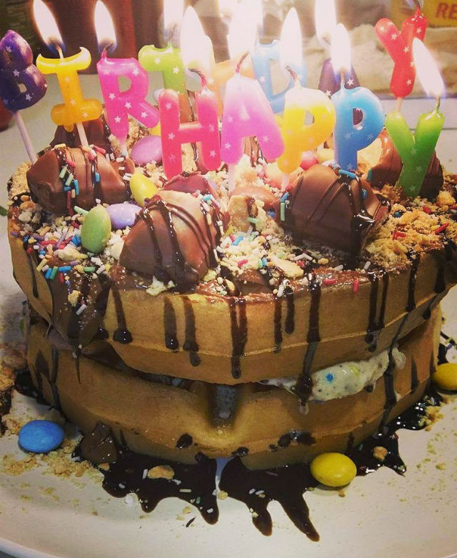 Α, εννοείται πως αν θες και είσαι ακόμα πιο σκληροπυρηνικός, μπορείς να κάνεις μπέργκερ με τρείς ή και τέσσερις βάφλες-πατώματα. Είναι οι λεγόμενες βάφλες castello- δηλαδή οι βάφλες κάστρα. Και προφανώς, την χρησιμοποιείς και σαν εναλλακτική τούρτα για τα γενέθλια σου- έχει γίνει,δεν θα είσαι ο πρώτος όπως διαπιστώνεις.