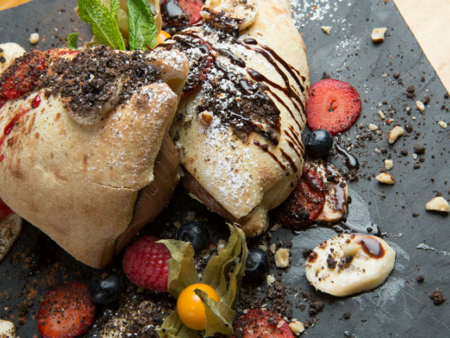 Για το τέλος έμεινε το καλτσόνε με nutella, μασκαρπόνε, μπανάνα, φράουλες και ξηρούς καρπούς. Ιταλική φινέτσα με γλυκό twist. Να ξέρεις ότι κόλλησα αρκετή ώρα μαζί του μιας και συνδυάζει δύο αγαπημένες γεύσεις. Την ζύμη της πίτσας με την νουτέλα. Άσε που οι ξηροί καρποί ταιριάζουν τέλεια σε κάθε μπουκιά.