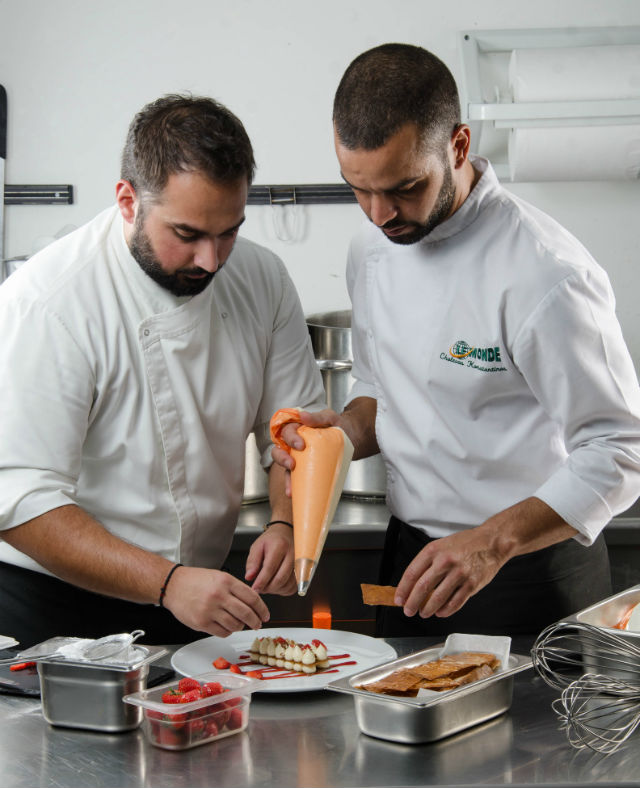 ‘Το φτιάχνουμε τη στιγμή που δίνει ο πελάτης την παραγγελία. Κάτι που αποτελεί προφανώς ρίσκο, για αυτό και δεν το κάνουν πολλοί. Απαιτεί φαντασία, εμπειρία και πολύ καλή οργάνωση. Αλλά αξίζει τον κόπο αφού είναι εξαιρετικά γευστικό. Εκείνο που, ακόμη και εγώ, που δύσκολα θα κάτσω να φάω μια ολόκληρη πάστα, δεν μπορώ να αντισταθώ να το δοκιμάζω καθημερινά’