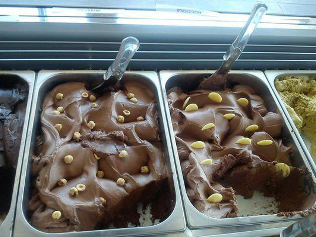 Για την ακρίβεια παγωτά, αφού η βιτρίνα περιλαμβάνει δεκάδες εθιστικές γεύσεις. Ξεκινώντας από την πικάντικη cioccolata peperoncino με σοκολάτα, κανέλα και καυτές πιπεριές (δυνατή και αξέχαστη) και συνεχίζοντας με λαχταριστή σοκολάτα γάλακτος, τραγανό biscottino (αυτό που λατρεύει η κόρη μου), φουντούκι (αυτό που λατρεύω εγώ, αφού μου θυμίζει τη γέμιση των ferrero rocher), φιστίκι (στο κανονικό του χρώμα και όχι πράσινο, αφού εδώ δεν χρησιμοποιούν καθόλου χρωστικές) και λοιπά φρουτένια.
