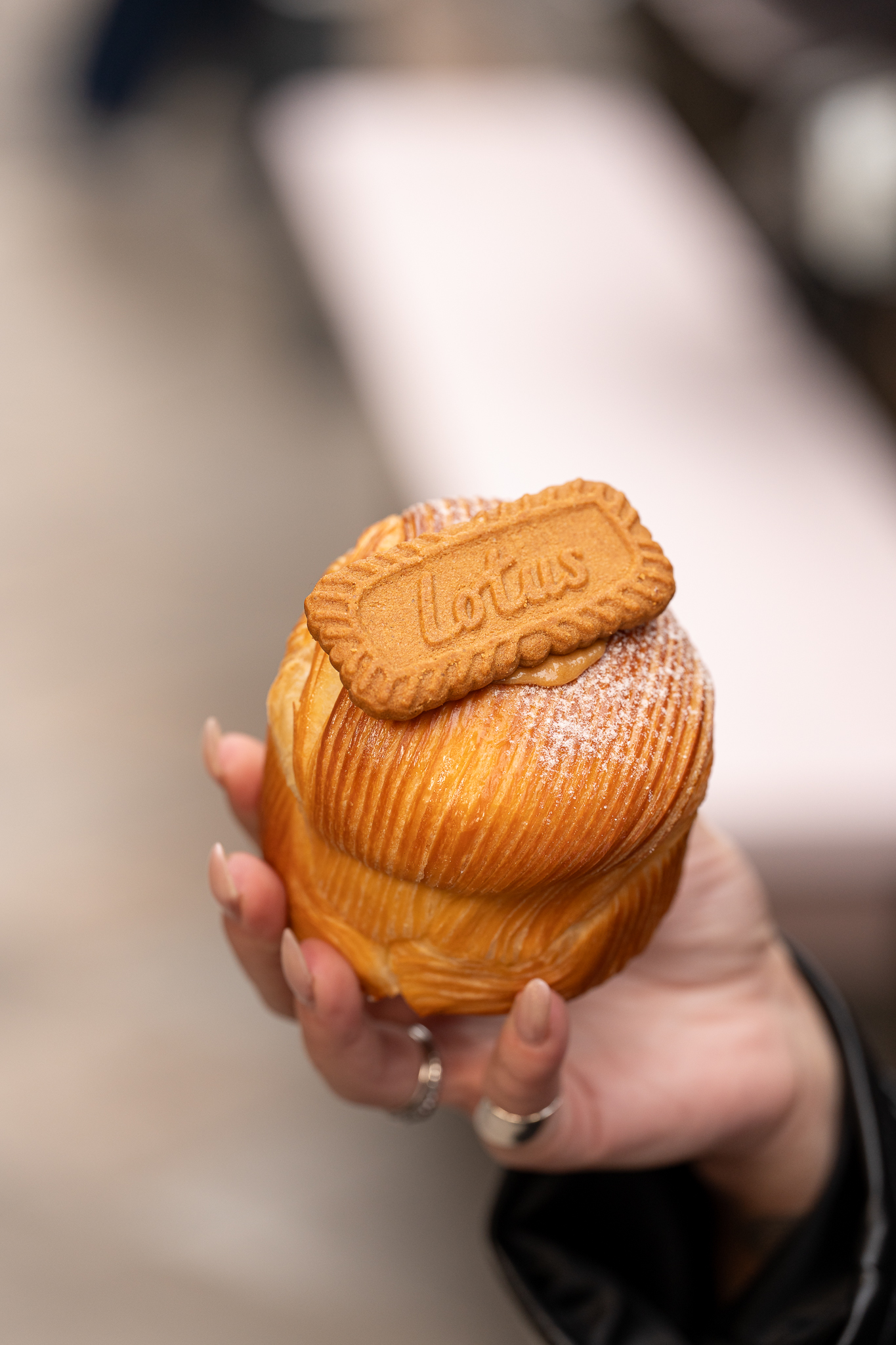 Αν ψάχνεις κάτι ακόμα πιο indulgent, το salted caramel Biscoff croissant συνδυάζει πλούσια κρέμα πραλίνας Biscoff με toffee αλατισμένης καραμέλας. Γεμάτο, βουτυράτο και έντονα αρωματικό, είναι από εκείνα τα γλυκά που γίνονται αμέσως signature.