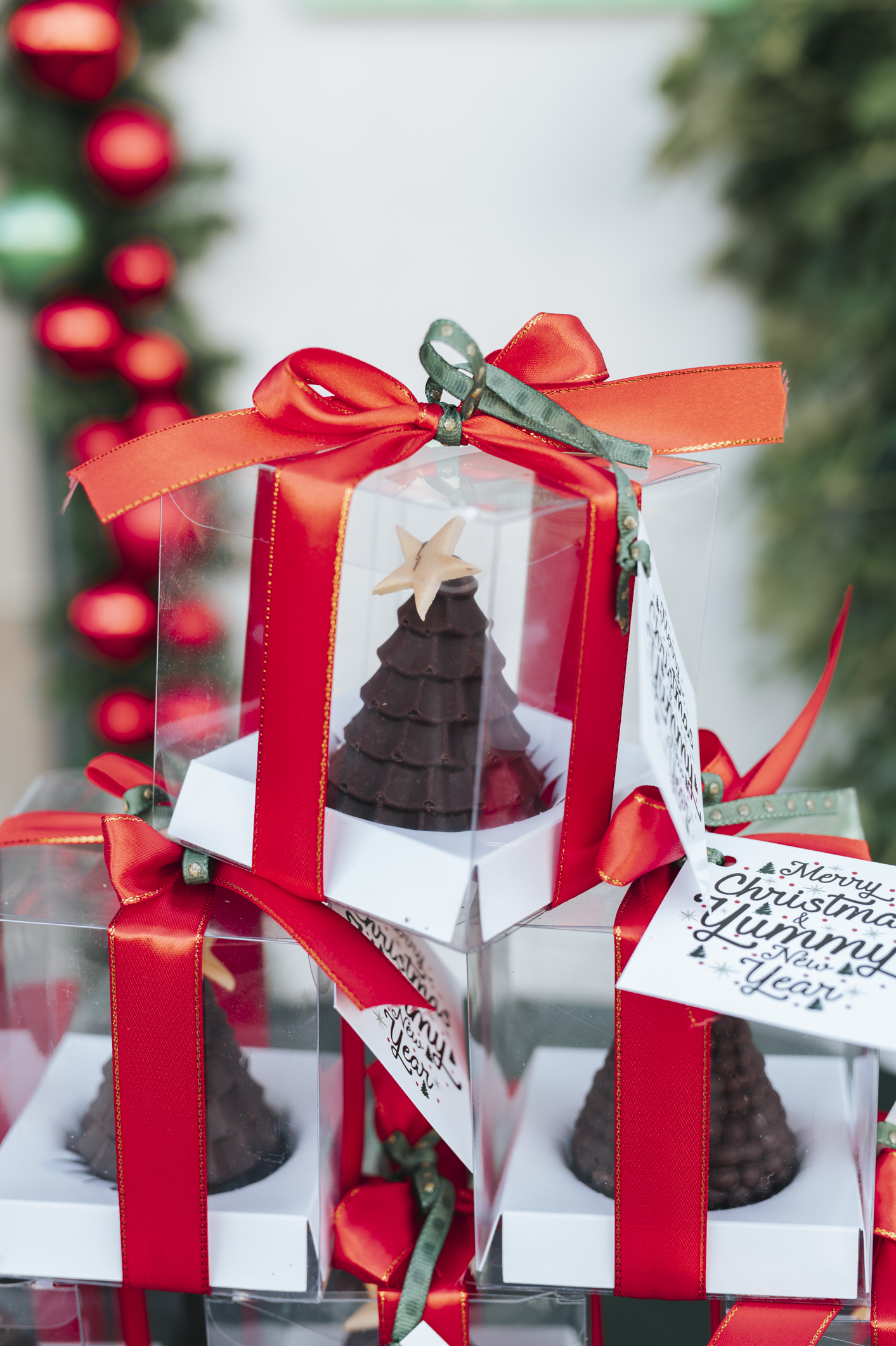 Ακαταμάχητα είναι και τα σοκολατένια χριστουγεννιάτικα δέντρα που φτιάχνονται στο εργαστήρι τους και είναι γεμάτα με βελούδινη κρέμα φουντούκι. Σήμα κατατεθέν, το χρυσό αστέρι τους. Είναι τόσο καλαίσθητα που δεν θα θέλεις να τα χαλάσεις, αλλά πίστεψέ μας, αξίζει.