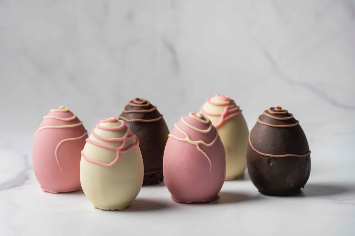 Must – try είναι και τα σοκολατένια αβγά από μαύρη σοκολάτα σε όλα τα μεγέθη: από τα μεγάλα που είναι γεμισμένα με vegan τρουφάκια κακάο ή ροζ σοκολάτα μέχρι τα μεσαία που κρύβουν μέσα τους τα περίφημα σοκολατάκια του Yum Guilt Free. Όμως και τα πιο μικρά σε μέγεθος – γεμιστά με κρέμα φουντούκι ή cashews και λευκή ή μαύρη σοκολάτα – είναι το τέλειο κέρασμα των ημερών.