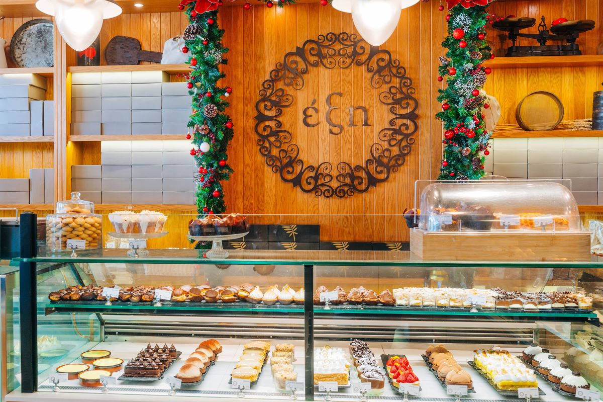 Το ζαχαροπλαστείο Έξη σε υποδέχεται με γιορτινή ατμόσφαιρα και λαχταριστά γλυκίσματα