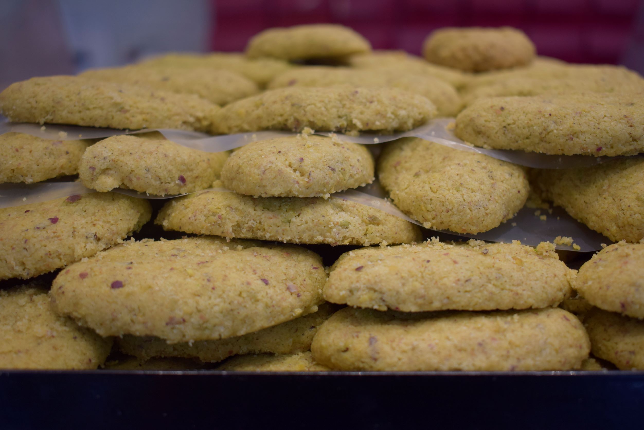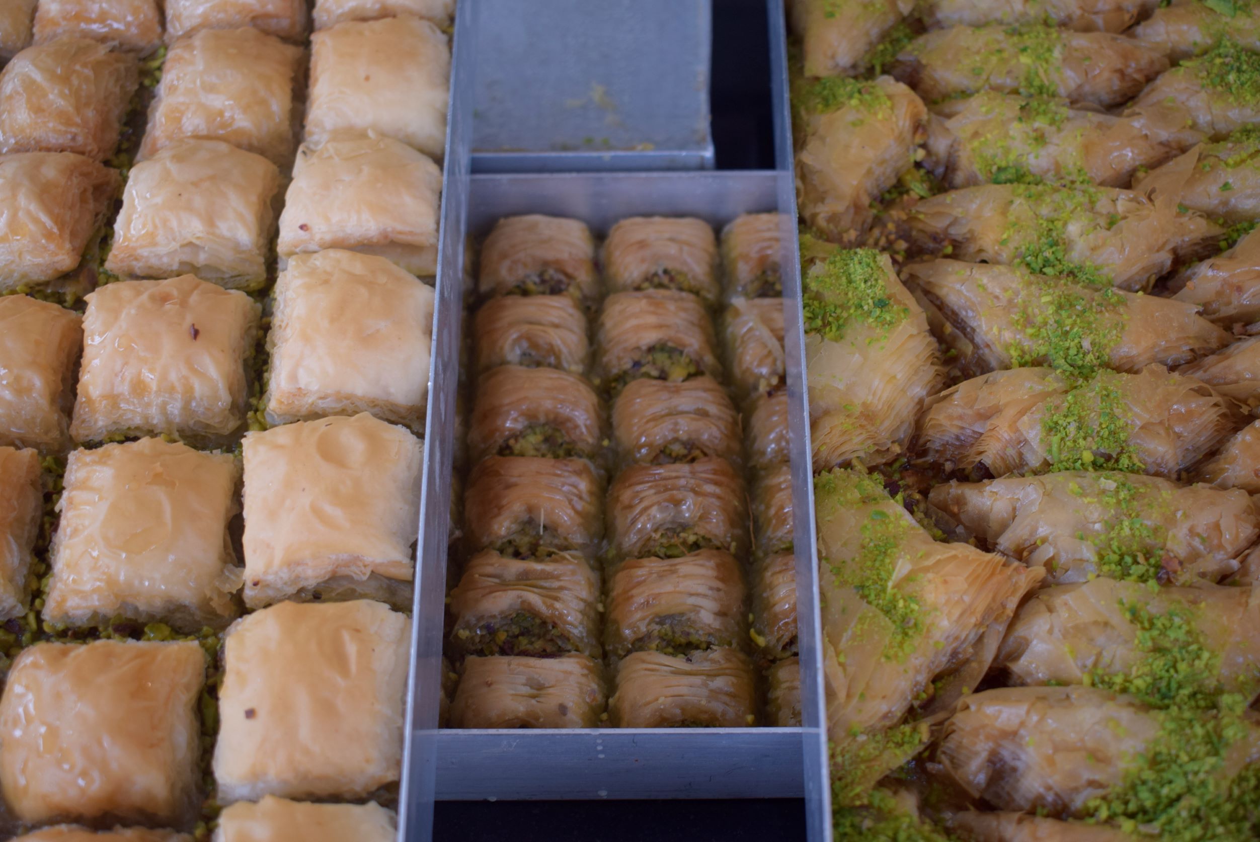 Το πράσινο, κελυφωτό φιστίκι, που φτάνει από το Γκαζιαντέπ στο εργαστήρι του Maxim, ρέει άφθονο και θα το βρεις περίπου στο 50% των γλυκών – δική μου εκτίμηση, με βάση όσα είδα.