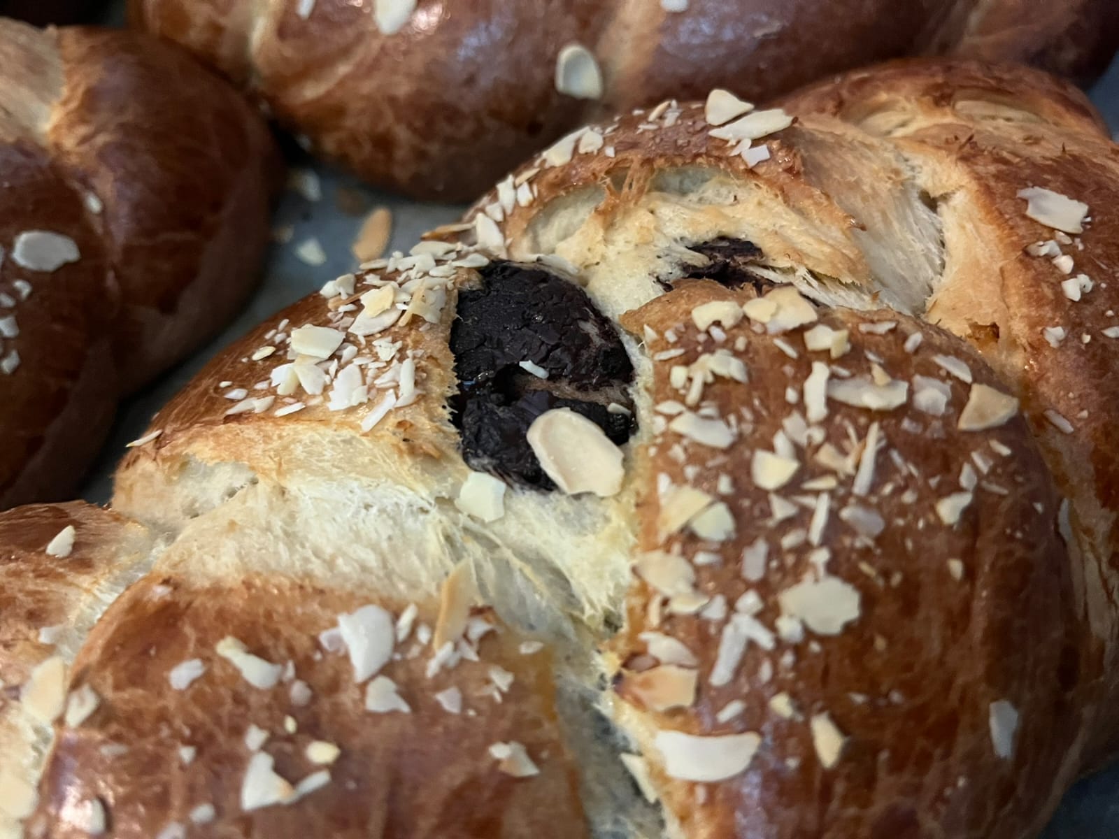 Θα το βρεις και σε παραλλαγή με σοκολάτα, αλλά και με γέμιση από χειροποίητη πάστα πράσινου φιστικιού. Το απόλυτο τσουρέκι της Πόλης – και ίσως και της πόλης- , που δύσκολα θα βρεις αλλού.