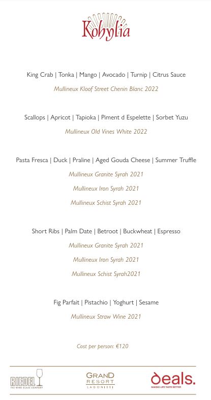 Στις 17 Ιουνίου, στο εστιατόριο Kohylia εντός του Grand Resort Lagonissi, θα πραγματοποιηθεί ένα wine dinner με κρασιά από το Mullineux Winery.