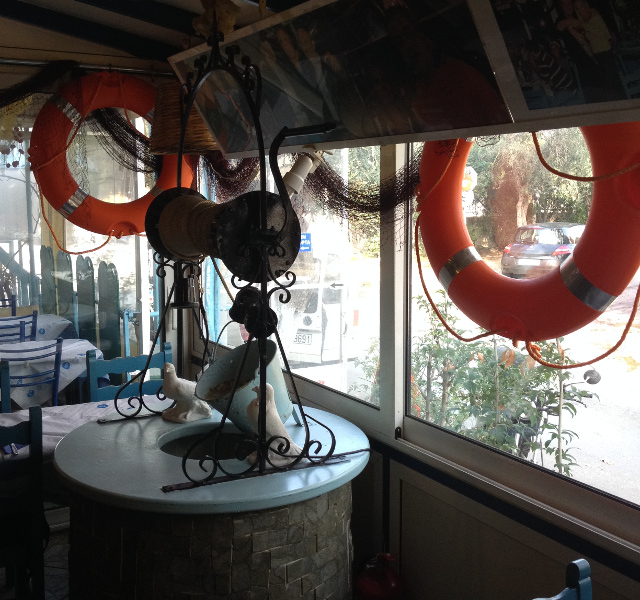 Για αυτό μην εκπλαγείς όταν μπαίνοντας εντός της δεις από ένα τεράστιο ψάρι με ανοιχτό στόμα μπροστά στον διακοσμητικό πάγκο ψαροπωλείου και φωτογραφίες του προηγούμενου ιδιοκτήτη αγκαλιά με τον Μάρκο Σεφερλή και τον Αλκαίο μέχρι ένα κανονικό πηγάδι στη μέση του μαγαζιού. Αυτό, την έκπληξη που λέγαμε, θα την νοιώσεις (και θα είναι ευχάριστη) όταν αρχίσεις να παραγγέλνεις πράγματα από τον λιτό κατάλογο. Ή όταν σου έρθει ο λογαριασμός στο τέλος.