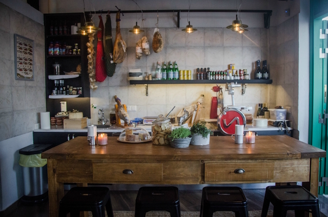 Έμπνευση των τεσσάρων ιδιοκτήτων και φίλων που δημιούργησαν το Hams & Clams ήταν κάτι μικρά οικογενειακά μαγαζιά της Βαρκελώνης και της Ανδαλουσίας, καθώς και γραφικά deli της Νότιας Ιταλίας. Καταλαβαίνεις λοιπόν, πως η επιλογή του Πειραιά δεν έγινε μόνο επειδή έχουν μεγαλώσει εκεί αλλά και γιατί δεν υπάρχει καλύτερο μέρος που να ταιριάζει στο ‘ισπανικό’ αυτό concept.