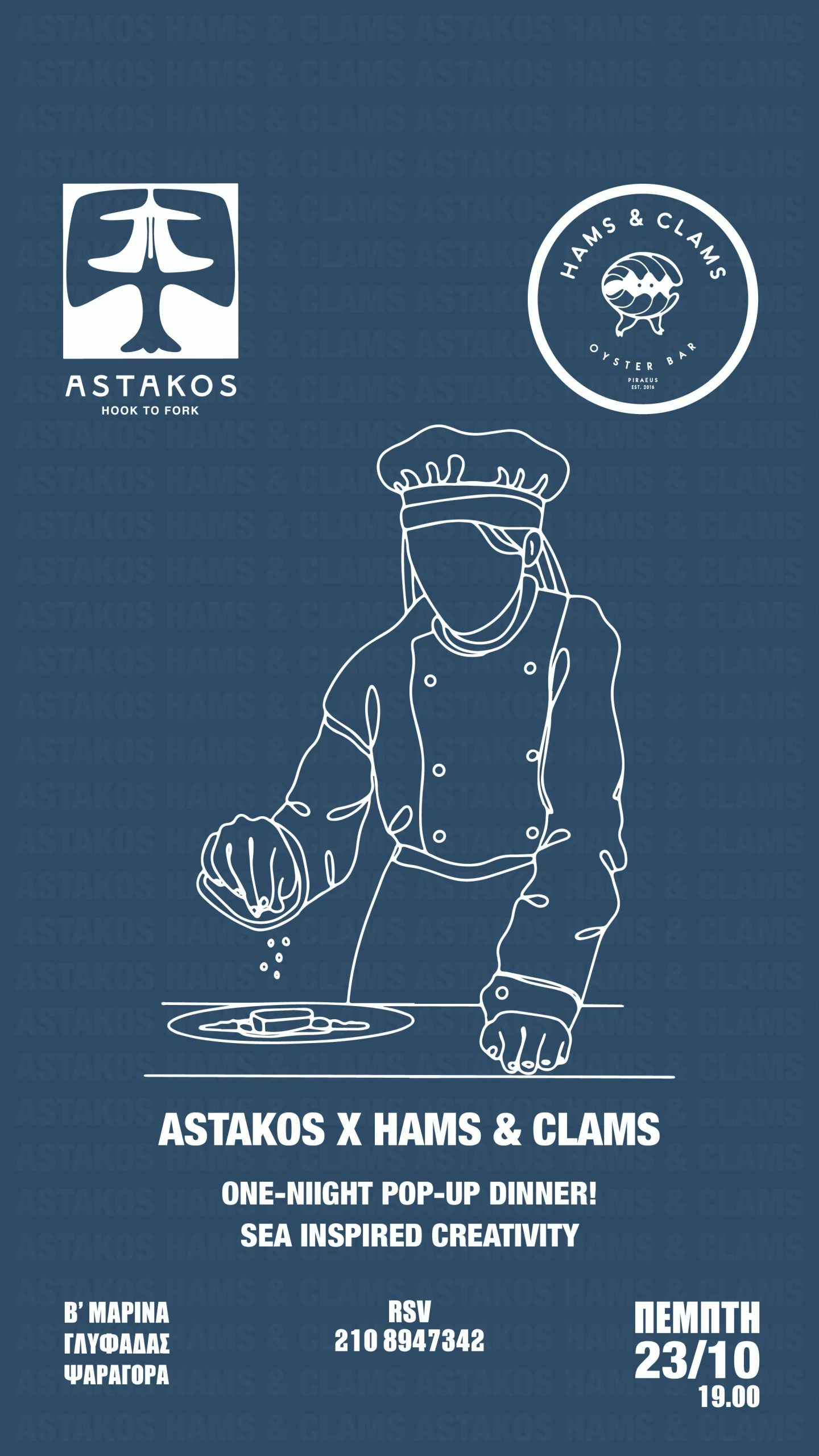 Την Πέμπτη 23 Οκτωβρίου, ο Αστακός της Γλυφάδας υποδέχεται στη σάλα του το Hams & Clams για ένα μοναδικό seafood collaboration dinner που υπόσχεται να ενώσει δύο κόσμους: τη θαλασσινή φινέτσα της Μαρίνας Ζέας με το γευστικό κύμα της Γλυφάδας. Δύο κουζίνες που αγαπούν τη θάλασσα συναντιούνται για μια βραδιά γεμάτη oysters, κρασί, αστακό και μουσική. Μια εμπειρία που ισορροπεί ανάμεσα στο fine dining και το party.