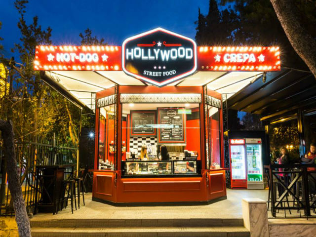 Hollywood Street Food. Από τα καλύτερα στα νότια. Και για να καταλάβεις, πέρα από το ότι τα σάλια σου θα τρέχουν συνεχώς και θα θες να δοκιμάσεις τα πάντα, αυτή η καντίνα είναι ό,τι πιο σπέσιαλ σε καντίνα έχεις δει. Περνώντας από την Θησέως, μπροστά από τις κούνιες στην πλατεία Δαβάκη θα την πάρει το μάτι σου, δεν μπορεί. Είναι κόκκινη και έχει κάτι τέλεια λαμπάκια από πάνω. Είναι αρκετά happy, χωρίς να είναι καθόλου κιτς. Πώς θα μπορούσε άλλωστε, αφού είναι σχεδιασμένη από την Σίσσυ Φειδά. «Η Σίσσυ είναι φίλη μου», μου λέει η ιδιοκτήτρια Μαρία, «είναι η μοναδική καντίνα που έχει σχεδιάσει και φυσικά έχει έρθει να φάει εδώ».