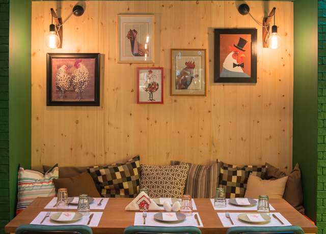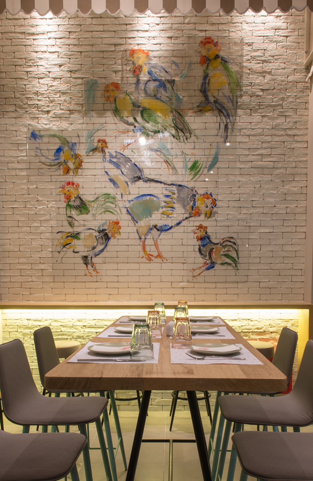 Δεν είναι εύκολο να σε κερδίσει ένα μαγαζί από την εμφάνισή του. Κι αυτό γιατί οι άνθρωποι στην εστίαση σπάνια τολμούν να βάλουν χρώμα ή ιδιαίτερες τεχνοτροπίες στα μαγαζιά τους από φόβο μην δεν καταφέρουν να ελκύσουν όλο τον κόσμο που θα μάζευαν αν έκαναν τη βασική έκδοση. Ο Xavier και ο Μάριος τόλμησαν και στην περίπτωση του Holy Chicken, δημιουργώντας αμέσως μετά το Holy Spirit άλλο ένα conceptικό μαγαζί. Θέλησαν να δώσουν ταυτότητα στο μαγαζί από την πρώτη ματιά. Και πέτυχαν πανηγυρικά δείχνοντας πού θα μαζεύεται ο περισσότερος κόσμος τη “χρονιά της κότας”.