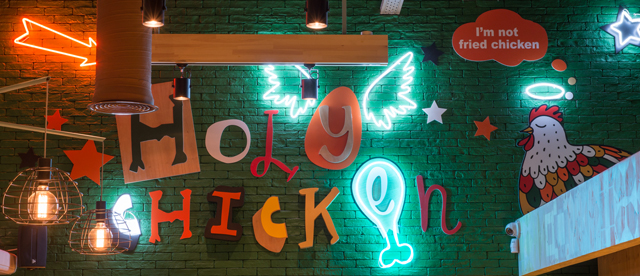 Από τον κατάλογό του και τη διακόσμησή του μέχρι το φαγητό και την συνολική εικόνα του, το Holy Chicken έχει στηθεί ιδανικά. Με χρώμα, με νόημα, με μία κεντρική ιδέα αλλά και πολλή όρεξη για κάτι διαφορετικό.