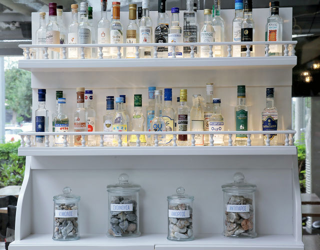 Μόλις μπεις θα νιώσεις πως τηλε-μεταφέρεσαι σε κάποιο από τα αγαπημένα σου κυκλαδίτικα νησιά, καθώς το χρώμα που κυριαρχεί στο εσωτερικό του είναι το λευκό με πινελιές γαλάζιου, με κάθε γωνία του να είναι λεπτομερώς σχεδιασμένη και διακοσμημένη. Ειδική μνεία στην ποικιλία των ούζων και των τσίπουρων από όλη την Ελλάδα, που στολίζουν αρκετά σημεία του μαγαζιού και τα διακοσμητικά πλακάκια που προσδίδουν ένταση και μία αύρα δροσιάς και νεανικότητας στον χώρο.