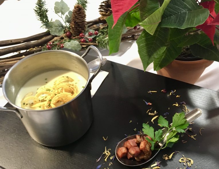 Συνταγή: Κρεμώδης σούπα πατάτας με τραγανό απάκι και σχοινόπρασο
