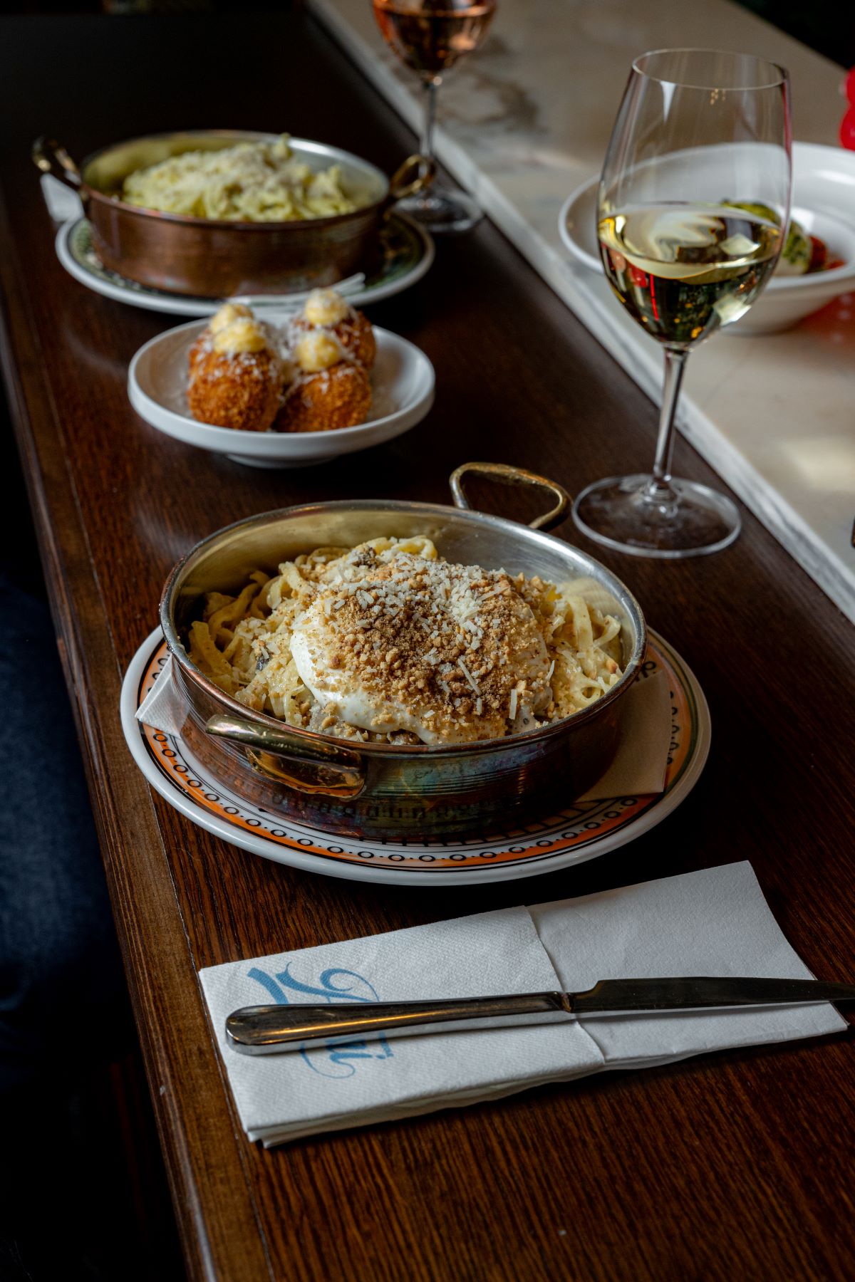 Τα πιάτα που έχει επιμεληθεί ο Αλέξανδρος Καρακατσάνης παντρεύουν το comfort στοιχείο με την premium προσέγγιση για ένα casual γεύμα που δεν χάνει τον ποιοτικό και πλούσιο χαρακτήρα του. Από τις τραγανές μπρουσκέτες και τα φρέσκα ζυμαρικά με χειροποίητες σάλτσες, μέχρι την pizza με προζυμένιο ζυμάρι σαρανταοχτάωρης ωρίμανσης και εκλεκτά υλικά (όπως για παράδειγμα τα αλλαντικά, που κόβονται επιτόπου), κάθε επιλογή είναι μια γιορτή γεύσης. Στον προσεγμένο κατάλογο θα βρεις επίσης λίγες σαλάτες και ορεκτικά – τόσα ώστε να μη χάνεσαι ανάμεσα σε δεκάδες επιλογές – και μια μικρή λίστα με πολύ ωραία εκτελεσμένα secondi, όπως η cotoletta ala milanese.