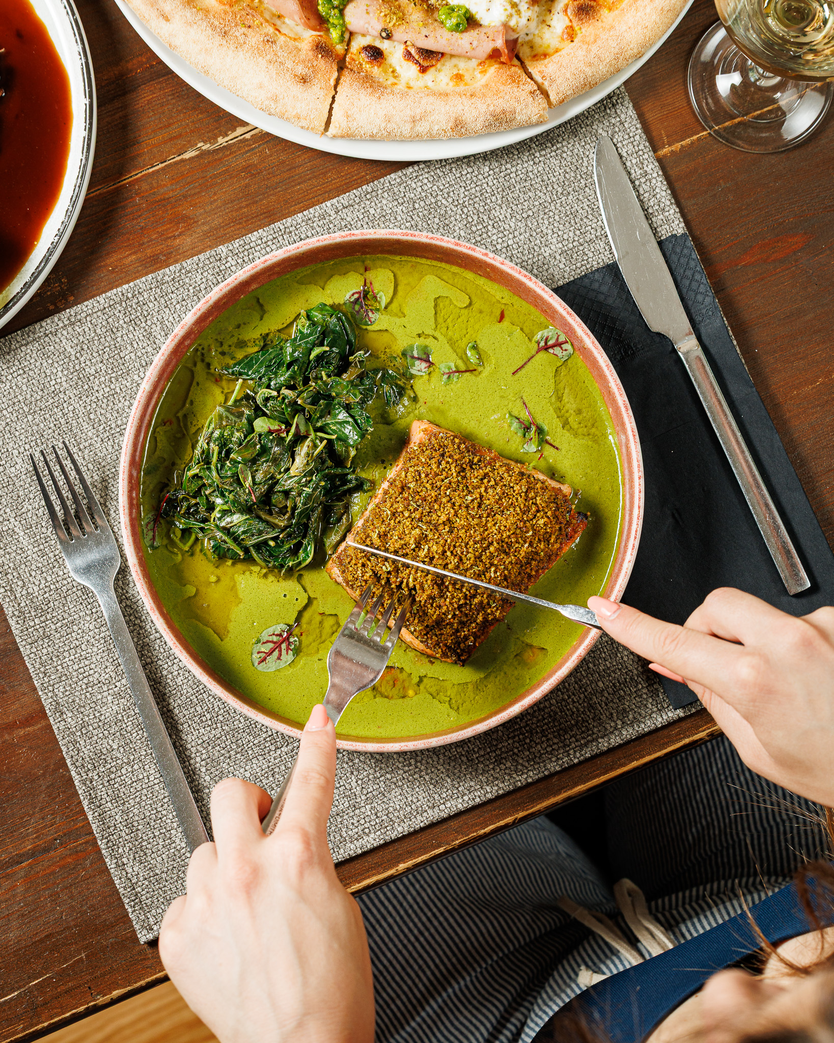 Highlight του νέου μενού το Iberico Pluma, λαιμός χοιρινού Iberico με πατάτες ογκρατέν και kale. Κάθε μπουκιά, ένα γευστικό ταξίδι, με την πλούσια υφή του χοιρινού να συναντά την κρεμώδη πατάτα και την πικράδα του kale. Πιο καλοκαιρινή επιλογή, ελαφριά και με χαρακτήρα το Salmone: ζουμερό φιλέτο σολομού με κρούστα βοτάνων, σοταρισμένα χόρτα και βελουτέ από λευκό κολοκύθι. Ένα πιάτο κομψό, φίνο, ελαφρύ και χορταστικό.