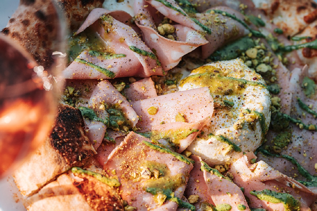 Μιας και το μαγαζί διαθέτει ξυλόφουρνο δεν θα μπορούσαμε να μην βάλουμε στη μέση και πίτσα. Προτιμήσαμε την Bologna με μορταδέλα, burrata, κρέμα τυριών και φιστίκι, που έφτασε αχνιστή και μοσχοβολιστή, με ελαστικό, λεπτό ζυμάρι και ωραία καψίματα στο στεφάνι της.