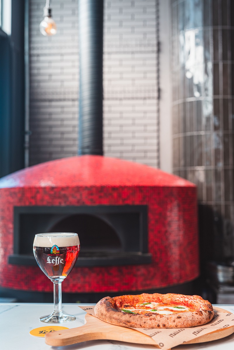 Επίσης, ο χαρακτηριστικός κατακόκκινος φούρνος της πίτσας, ο οποίος έχει έρθει κατευθείαν από την Ιταλία και η ανοιχτή κουζίνα, γεμίζουν τον χώρο και σε προϊδεάζουν για το τί θα επακολουθήσει.