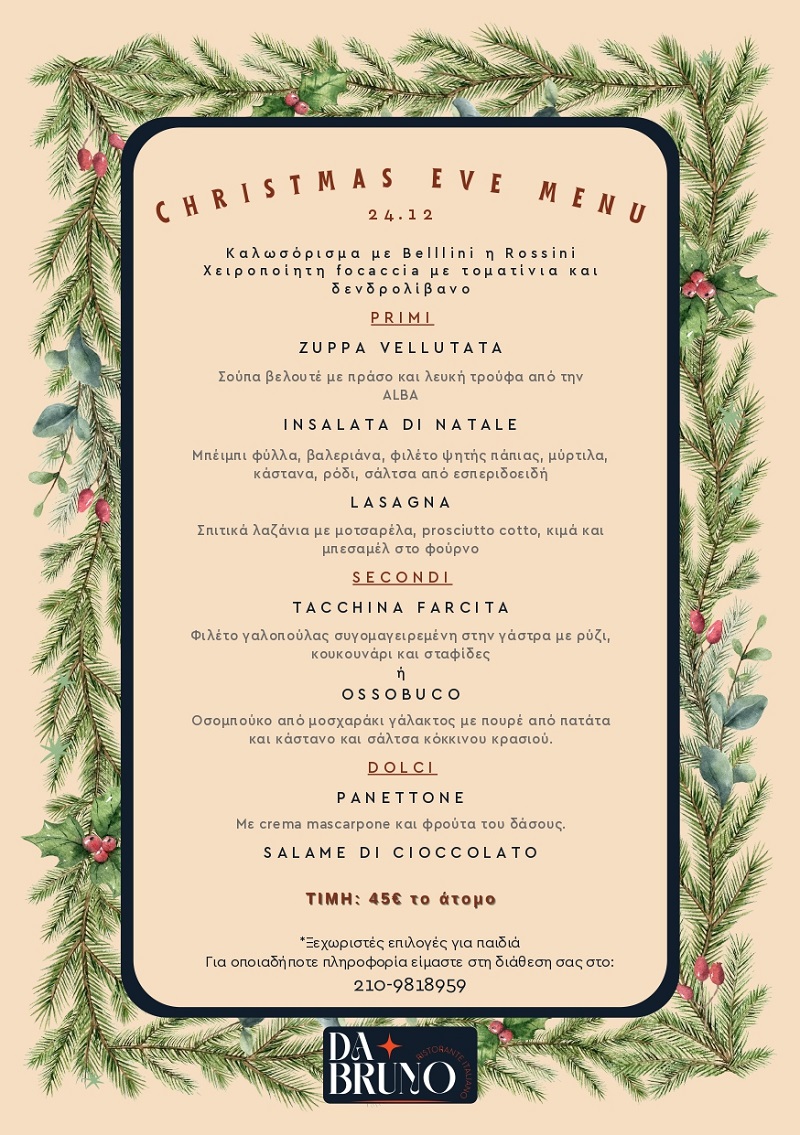 Κόστος Χριστουγεννιάτικου μενού: 45€ / άτομο