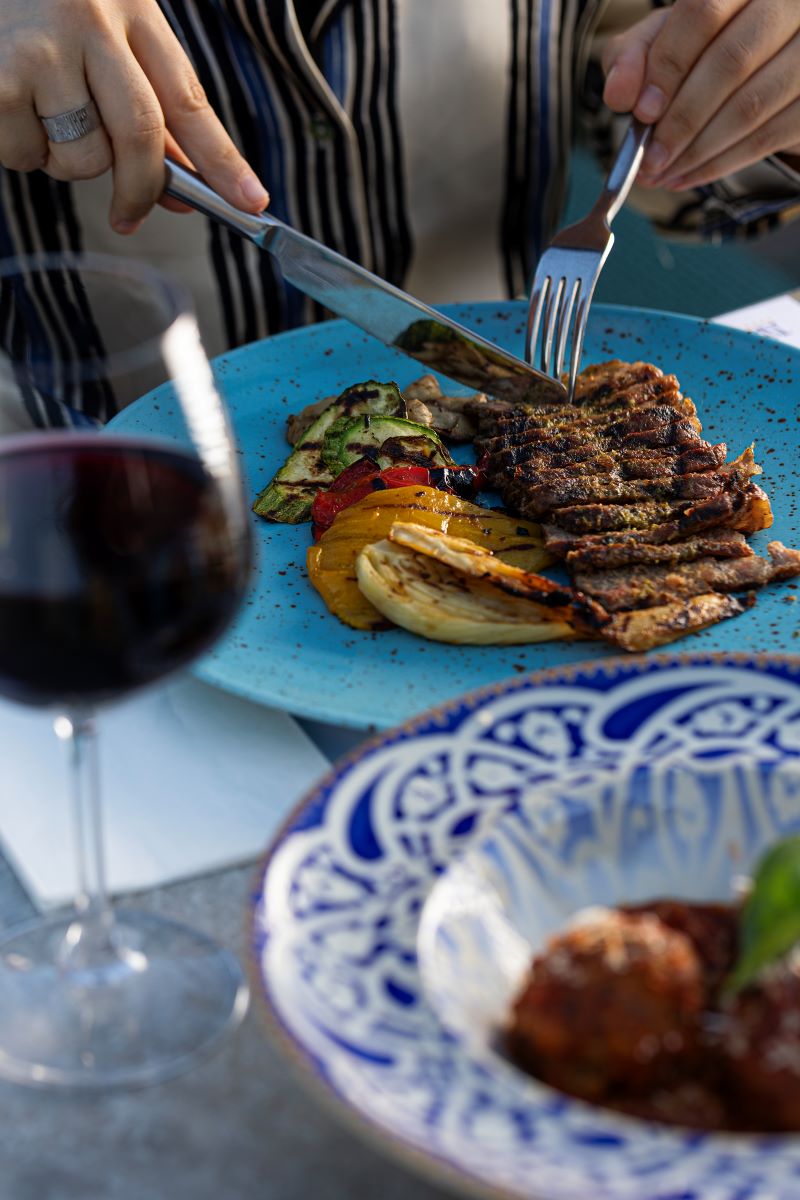 Τέλος, μια κλασική ιταλική επιλογή, η Tagliata, με λεπτοκομμένο μοσχαρίσιο φιλέτο επικαλύπτεται με herb butter και σερβίρεται με ψητά λαχανικά σχάρας.