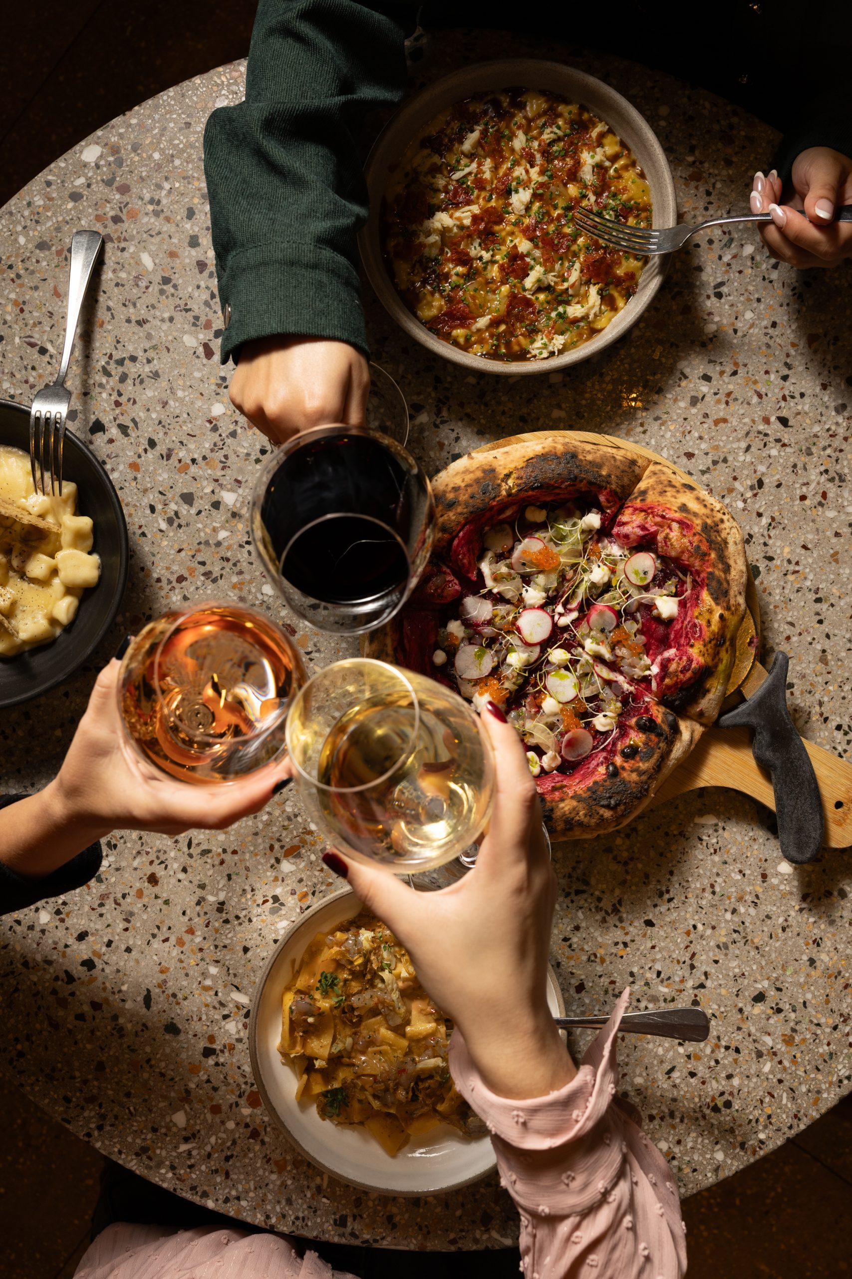Αυτό που εντυπωσιάζει είναι το πόσο λιτή ή πληθωρική μπορείς να επιλέξεις να είναι η casual fine dining εμπειρία σου εδώ. Είτε περιοριστείς σε ένα ποτήρι κρασί από την έξυπνα διαμορφωμένη λίστα (με έμφαση σε Ελλάδα και Ιταλία) και μία ή περισσότερες από τις 11 διαθέσιμες πίτσες ναπολιτάνικης ιδιοσυγκρασίας -με τα χαρακτηριστικά καψαλισμένα στεφάνια του ξυλόφουρνου και συνδυασμούς που οδηγούν σε καθαρό umami. Ξεκινώντας από την «απλή» Margherita με mozzarella di bufala και τη Zucchini με mozzarella, stracchino και μαριναρισμένα κολοκυθάκια, και φτάνοντας μέχρι τη bestseller Carbonara Zaferano με pancetta, κρόκο αυγού, σαφράν, peperoncino και Parmigiano Reggiano.