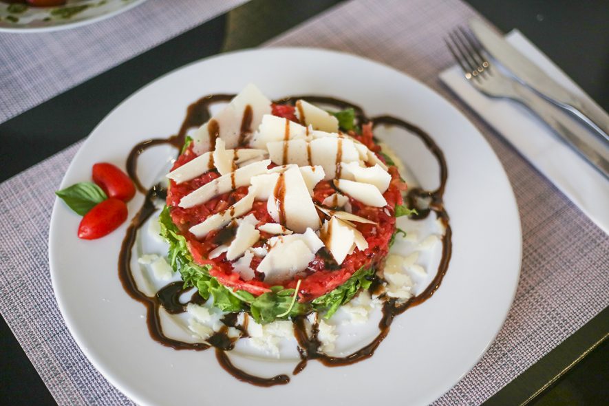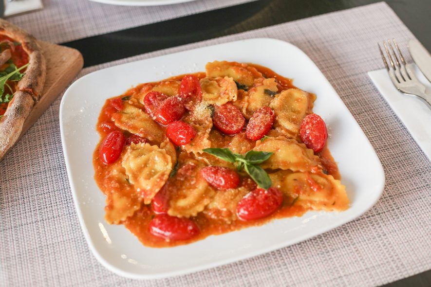 Στον κατάλογο θα βρεις επίσης ενδιαφέροντα ορεκτικά και σαλάτες όπως η Caprese (που εδώ γίνεται με burrata), ζυμαρικά όπως τα γεμιστά ραβιόλι με μοτσαρέλα και προσούτο, αλλά και ξεχωριστές προτάσεις σε κρέας: Χοιρινό ή κοτόπουλο σιγομαγειρεμένο σε χαμηλή θερμοκρασία για περίπου 15 ώρες με την τεχνική sous vide, αλλά και πικάνια ή ταλιάτα που σερβίρεται με ρόκα και σως chimichurri.