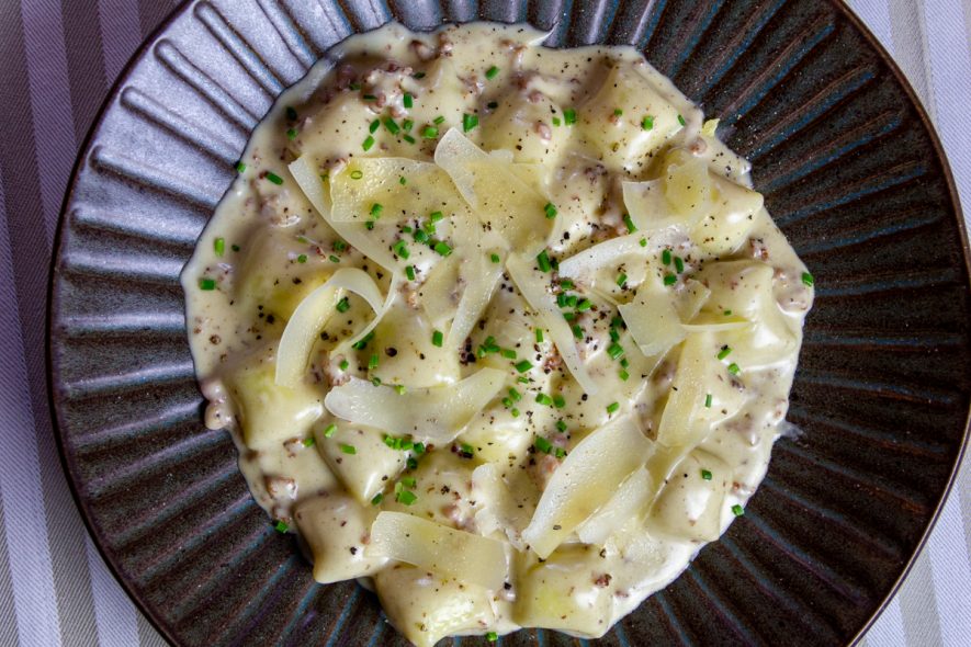Φυσικά τις μακαρονάδες του ή κάποιο άλλο από τα πιάτα της κατηγορίας pasta. Μπορείς να διαλέξεις μία από τις κλασικές και αγαπημένες συνταγές του (όπως η Amatriciana που λέγαμε νωρίτερα) ή να δοκιμάσεις μία από τις δημιουργικές προτάσεις του νέου μενού, όπως τα Gnocchi di terra, γεμιστά με μανιτάρι porcini, κρέμα παρμεζάνας, λουκάνικο salsiccia και πέστο μελιτζάνας. Από τις πίτσες, όποια κι αν διαλέξεις είναι σωστή επιλογή, όμως o Κώστας Σκάρλας επιμένει ότι οι premium επιλογές «είναι όλες φανταστικές!».