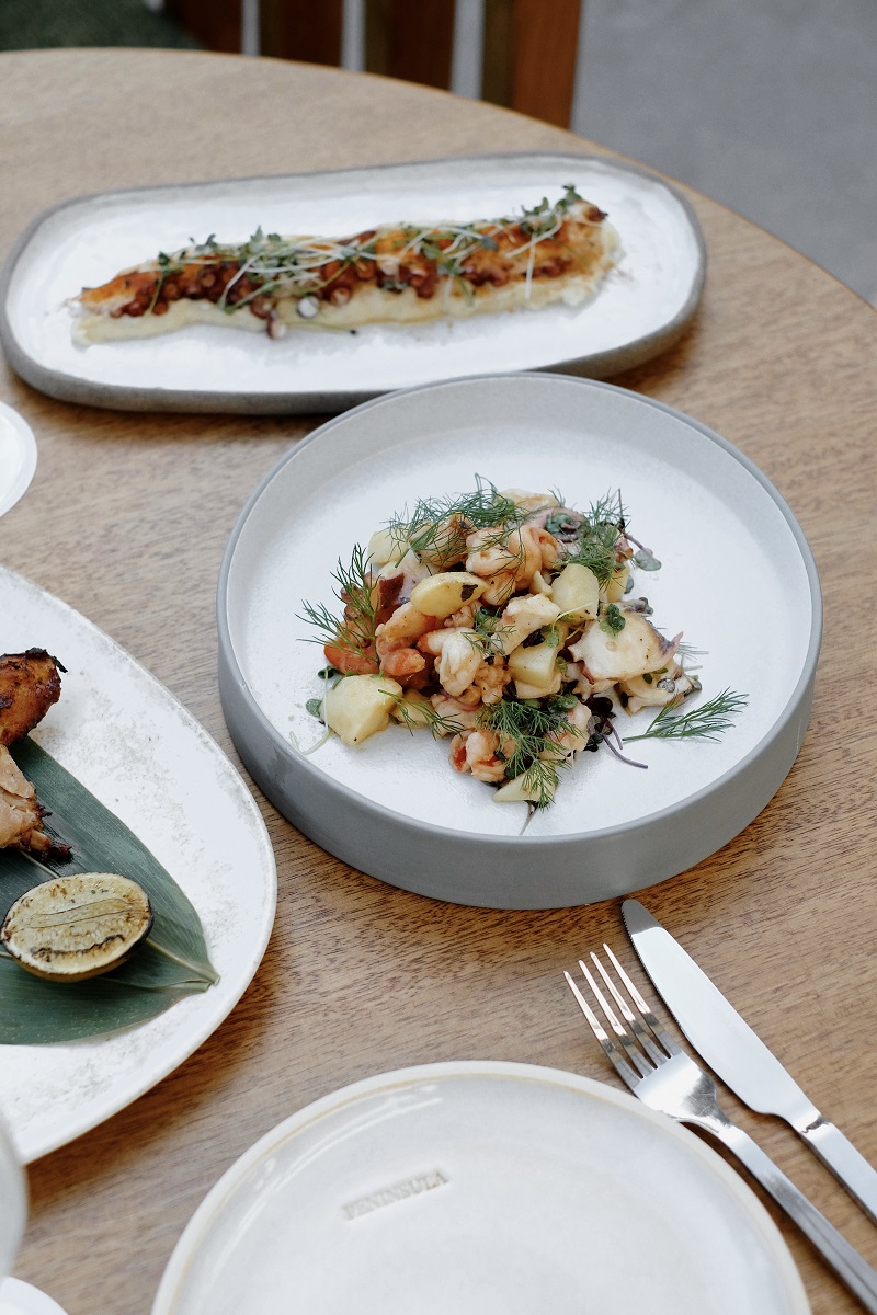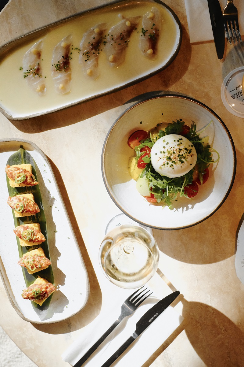 O έμπειρος chef Marco Calenzo που επιμελήθηκε το υπόλοιπο μενού του εστιατορίου άφησε τη δημιουργικότητά του ελεύθερη κι έτσι στις σελίδες του καταλόγου, στα ορεκτικά, θα βρεις ένα υποδειγματικό vitello tonnato, ένα απίθανα ψημένο στη robata χταπόδι το οποίο σερβίρεται με πουρέ πατάτας, πάπρικα και αρωματισμένο λάδι σκόρδου, κάτι στρουμπουλά και ζουμερά, κοκκινιστά κεφτεδάκια όπως τα φτιάχνουν στη Σικελία, με πολέντα και παρμεζάνα, καθώς και μια ιδιαίτερη εκδοχή των arancini με τόνο ταρτάρ που έχει «περάσει» από πικάντικη μαρινάδα και σαφράν.