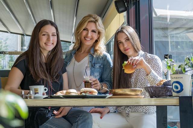 Στo κέντρο η Άντζελα Τσαμπαρλίδου, ιδιοκτήτρια (μαζί με τον αδελφό της Άλκη) του Kazarte