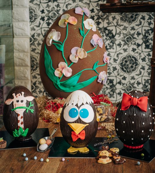 Εκτός από τα αυγά, θα έχεις την ευκαιρία να επιλέξεις ανάμεσα σε διάφορα μπισκότα, διακοσμημένα σε πασχαλινό mood, καλάθια με συνθέσεις προϊόντων για να κάνεις δώρο στους αγαπημένους σου και βέλγικες πραλίνες σε χαριτωμένα σχέδια (πάντα πασχαλινά).
