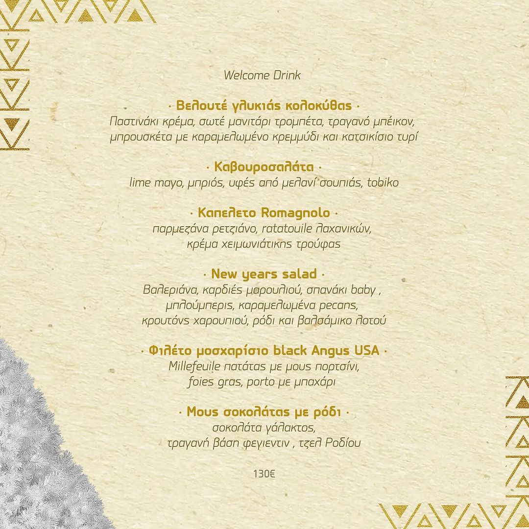Κόστος Πρωτοχρονιάτικου μενού: 130€ / άτομο