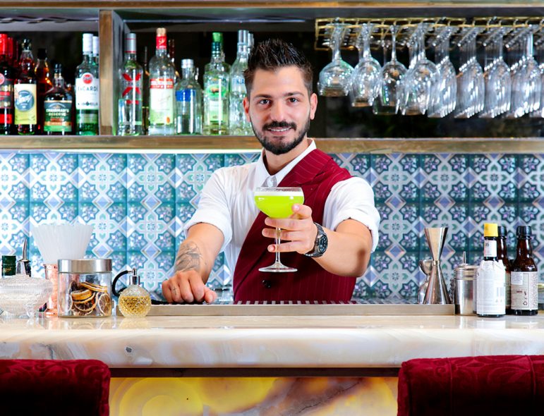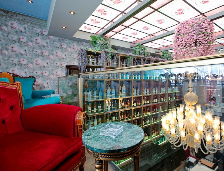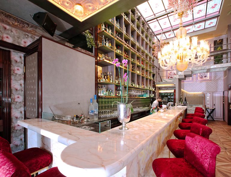 Μπαίνοντας μέσα δεν θα ξέρεις πού να πρωτοκοιτάξεις. Αλήθεια! Πρώτα σου παίρνει το μυαλό ο τεράστιος πολυέλαιος και το γυάλινο ταβάνι με τα floral ρομαντικά μοτίβα, έπειτα η επιβλητική μπάρα με την κάβα από τα πιο σπάνια ποτά που φτάνει μέχρι ψηλά και πρέπει να ανέβεις με σκάλα μέχρι επάνω.