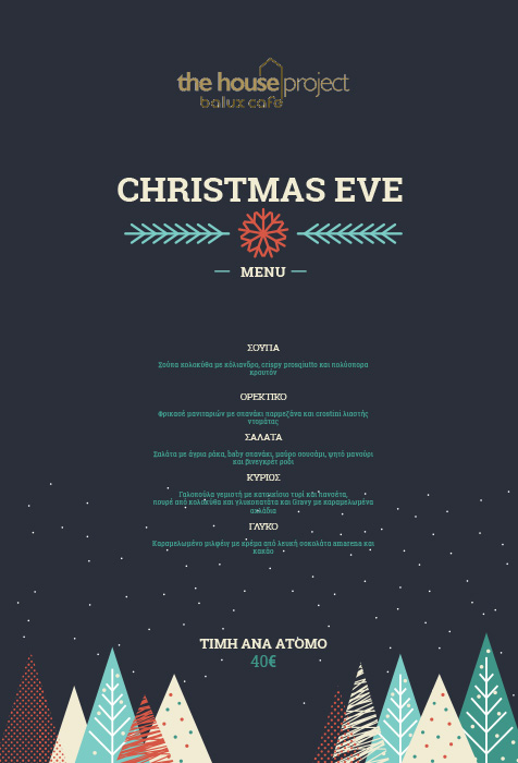 Πως το λένε αυτό που είναι καλοκαίρι και θέλεις να έρθουν τα Χριστούγεννα; Ή εκείνο που ζεις τα Χριστούγεννα και αναπολείς τις βραδιές στη θάλασσα; Ε, το Balux house project σε βγάζει από το δίλημμα συνδυάζοντας τα καλά των δύο πιο ζεστών- από άποψη θερμοκρασίας και διάθεσης αντίστοιχα- εποχών του χρόνου και προσκαλεί εσένα και τους φίλους σου για χριστουγεννιάτικο ρεβεγιόν. Το μενού έχει σούπα κολοκύθα με κολίανδρο, crispy προσούτο και πολύσπορα κρουτόν, φρικασέ μανιταριών με σπανάκι παρμεζάνα, μαύρο σουσάμι, ψητό μανούρι και βινεγκρέτ ρόδι, την παραδοσιακή γαλοπούλα μ’ ένα twist και καραμελωμένο μιλφέιγ από λευκή σοκολάτα και κακάο, για να κλείσει αυτή η βραδιά με την πιο γλυκιά αίσθηση του χρόνου.