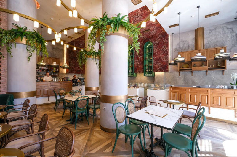 Άνετοι καναπέδες, ένα πλούσιο χαλί που καλύπτει τους τοίχους και το ταβάνι κατά τα πρότυπα της ανατολίτικης διακόσμησης, φωτιστικά που θυμίζουν μοντέρνους πολυέλαιους και πολλές διάσπαρτες στον χώρο κομψές πινελιές είναι μερικά από τα στοιχεία που κλέβουν τις εντυπώσεις στη Ζουμπουρλού, η οποία σύντομα θα υποδέχεται κόσμο και στην άνετη βεράντα της με θέα την πλατεία Ψυρρή.