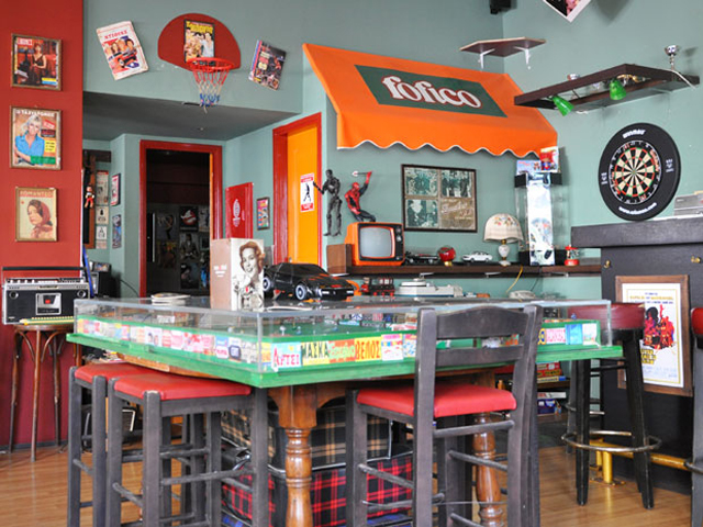 Πώς να μην αρχίσω με αυτό; Νομίζεις πως θα βρεις δεύτερο σε όλη την Αθήνα; Γελιέσαι. Και πουθενά αλλού βασικά. Εδώ θα σώσεις την πριγκίπισσα, θα παίξεις Σούπερ Μάριο ντε. Ή Σόνικ, ό,τι προτιμάς. Α, βέβαια, έχει και όλα τα παλιά επιτραπέζια. Και βελάκια. Και το σήμα των Thunder thunder thunder Cats στον τοίχο. Θα κάτσεις σε vintage πράσινους βελούδινους καναπέδες, θα πιεις καφέ ελληνικό σε γιαγιαδίστικα φλιτζάνια πάνω σε αυτά τα υπέροχα ρετρό τραπέζια με τα γεωμετρικά σχέδια (που όταν ήμουν μικρή μου φαίνονταν τόσο χάλια, αλλά τώρα θα τα έλεγες και επιτομή του χιπστερισμού). Και σε θρανία, ναι. Γύρω σου παλιά αντικείμενα, από πάνω σου Τα Κορίτσια στον Ήλιο (aka στάσου μύγδαλα), κάποια πρωτοσέλιδα από παλιές εφημερίδες, στοίβες με Σούπερ Κατερίνα και αφίσες στις τουαλέτες, που τις κάνουν να μοιάζουν με παιδικό δωμάτιο της δεκαετίας του ’80. Δηλαδή με το δικό σου. Είναι καλτ αλλά με στυλ. Οι ιδιοκτήτες είναι φιλικότατοι, τα ποτά, η μουσική, η διάθεση, ο κόσμος και όλα τέλος πάντων, όπως πρέπει. Εκεί κάνεις τα γενέθλιά σου, για να νιώθεις ότι έγινες 10. Το έκανα φέτος.