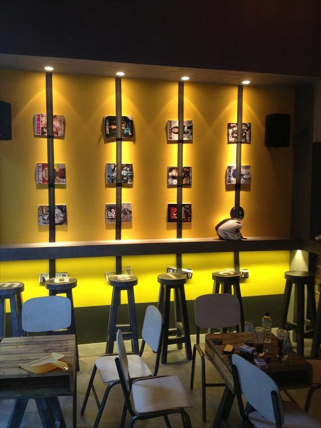Στον χώρο του παλιού Kallimarmarocks. Στην (όμορφη μην τα ξαναλέμε) Εμπεδοκλέους. Αν πήγαινες πάλι σχολείο, νομίζω πως θα ήθελες να είναι κάπως έτσι. Καρέκλες σαν κι αυτές που καθόσουν όταν ήσουν 15 και έγραφες Άλγεβρα (απαπα, τι θυμήθηκα τώρα). Και (φυσικά) τραπέζια που μοιάζουν με θρανία. Και μερικά βινύλια. Ναι, θα μπορούσε να είναι ένα σχολείο μουσικό. Πάνω στους κίτρινους τοίχους κρέμονται μουσικά περιοδικά και τα σκαμπό, βαλμένα στη σωστή σειρά, σχηματίζουν τη λέξη music. Στο all day αυτό στέκι θα έχετε σίγουρα μια καλή σχολική χρονιά, όποια κι αν είναι η ηλικία σας.