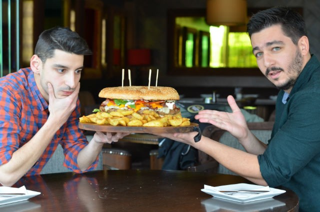 Η αποστολή ήταν απλή, η πρόκληση τεράστια. Δύο άτομα, έμπειρα στην κατανάλωση burger και με πολλά χιλιόμετρα στα μαχαιροπίρουνα θα έρχονταν αντιμέτωπα με το μεγαλύτερο burger που έχουν δει τα μάτια σου-τους. Ο κατάλογος έλεγε ότι προορίζεται για 6-8 άτομα. Η μάχη έμοιαζε άνιση, το ηθικό όμως ήταν ακμαίο. Μέχρι να εμφανιστεί μπροστά μας.