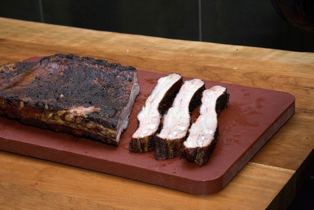Όταν βάζουμε ένα κομμάτι κρέατος στο grill, το εκθέτουμε πολύ κοντά στην φωτιά και αυτό ψήνεται σε μια θερμοκρασία που αγγίζει τους 230 – 300 βαθμούς Κελσίου. Έτσι,το κρέας ψήνεται γρήγορα. Το real Texas barbecue που θα γευτείς στο Mama-Roux South σιγοψήνεται μέσα σε ειδικό smoker από την έμμεση θερμότητα που βγάζουν τα ξύλα, σε μια θερμοκρασία που δεν ξεπερνάει τους 120 βαθμούς και ανάλογα με το είδος και την κοπή του κρέατος έως και 12 ώρες. To Mama-Roux South είναι το μοναδικό εστιατόριο που χρησιμοποιεί offset smoker για να καπνίζει το κρέας. “Το συγκεκριμένο smoker το έχω σχεδιάσει ο ίδιος, μετά από συνδυασμό διαφορετικών τεχνικών και ατελείωτων ωρών δοκιμών για να δουλεύει σε εσωτερικό χώρο”, μου λέει περήφανα ο Βασίλης.