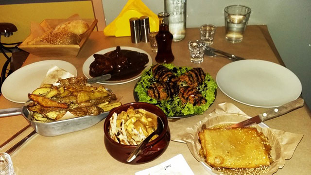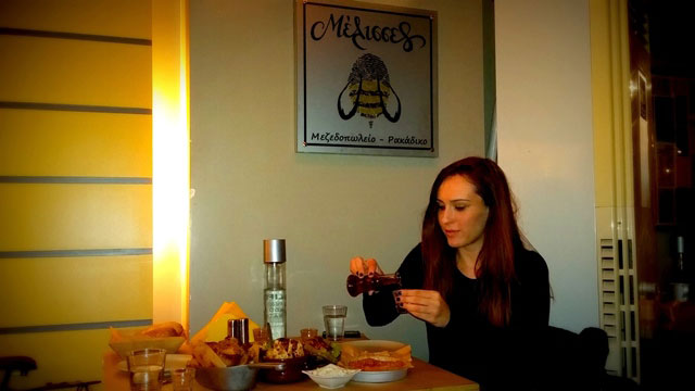 Ξεκίνησα με Μέλισσες, διότι είναι από τα καλύτερα νεανικά μεζεδοπωλεία, όχι μόνο της περιοχής αλλά ίσως και της Αθήνας ολόκληρης. Έχουν μεζέδες από όλη την Ελλάδα, τα μαγειρεύουν όλα μόνοι τους και τα μαγειρεύουν καλά. 34 πιάτα παρακαλώ στο μενού τους και η φιλοσοφία τους είναι αυτό που λέμε όλα για τη μέση. Δηλαδή όχι μερίδες και τέτοια. Αλλά ας τα πάρουμε από την αρχή. Φτάσαμε και ο Στέλιος με υποδέχτηκε με χαμόγελο (α δεν έχω λόγια, πολύ ευγενικός και εξυπηρετικός). Και μετά μας έφερε ό,τι καλύτερο έπαιζε στον κατάλογο (που όλα καλά είναι, αλλά έπρεπε να γίνει μια επιλογή ρε αδελφέ). Μπριζολάκια πιπεράτα με αυτή την υπέροχη πηχτή σάλτσα, που μου κάψανε λίγο την γλώσσα, γιατί δεν είμαι και πολύ συνηθισμένη στα καυτερά, ένα ταμπουλέ που θα θυμάμαι για πάντα, κοτόπουλο με χαλούμι και πιτάκια βουτηγμένο σε μία σάλτσα εξαιρετική και το θεσπέσιο ραβασάκι με σουσάμι και μέλι, που λέγεται έτσι γιατί κλείνει σαν φάκελος και είναι πνιγμένο στο μέλι.