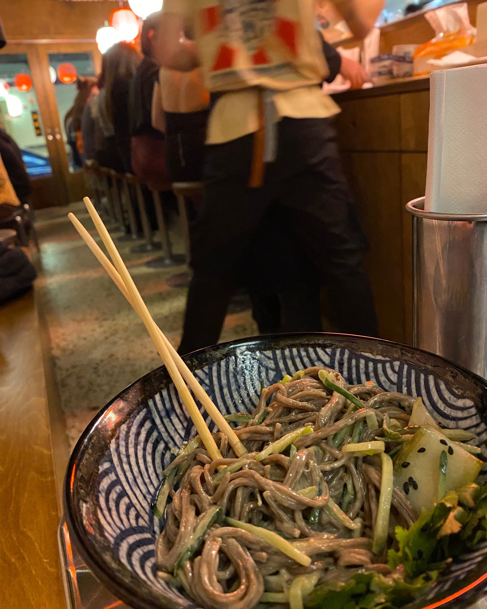 Ο Γιάννης Πετρής έχει μαθητεύσει στην Ιαπωνία, την οποία επισκέπτεται συχνά και της οποίας μιλά τη γλώσσα, δουλεύοντας συχνά και ως guide. Η διακόσμηση του μαγαζιού είναι αποτέλεσμα αυτών των ταξιδιών, που έρχονται απευθείας από Ιαπωνία και είναι ο λόγος που νιώθεις ότι έχεις μπει σε ένα αυθεντικό ιαπωνικό μαγαζί, που δεν έχει καθόλου ελληνικό στοιχείο. «Τα περισσότερα που βλέπεις τα έχουμε φέρει από τα σπίτια μας». Αυτή η βαθιά προσωπική σχέση με τη χώρα αποτυπώνεται και στις γεύσεις: sushi δεν θα βρεις, αλλά έχει ramen βασισμένα σε διαφορετικές τοπικές συνταγές της Ιαπωνίας, καθώς και soba noodles σε σαλάτα που, κατά τη γνώμη μου, είναι από τα πιο δυνατά πιάτα του μενού.