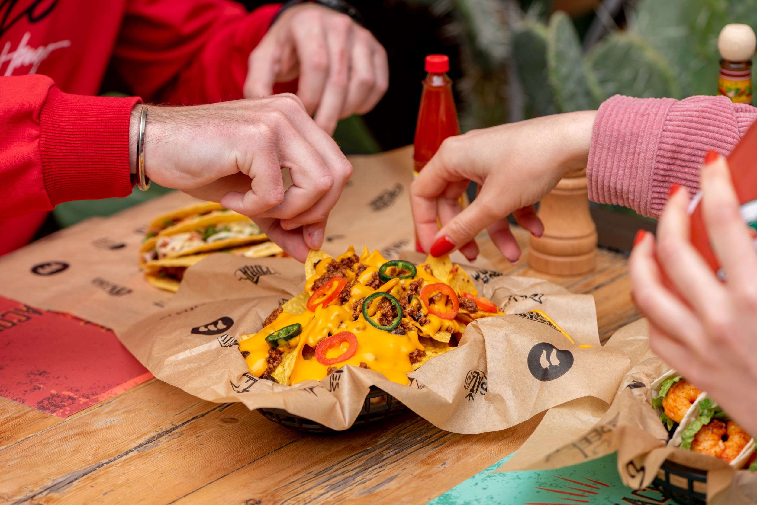Εκεί σε περιμένει μια Do It Yourself εμπειρία. Αρχικά, διαλέγεις τη βάση που επιθυμείς μέσα από διάφορες επιλογές όπως nachos, chimichangas και burrito bowls και φυσικά την αγαπημένη τριάδα της Tex-Mex κουζίνας – tacos, burritos και quesadillas. Στη συνέχεια, επιλέγεις τη γέμισή σου ανάλογα με τη διάθεση και τις προτιμήσεις σου. Θα βρεις σιγομαγειρεμένο για ώρες μοσχάρι barbacoa, χοιρινό carnitas με chipotle paste, χειροποίητο χοιρινό γύρο Al Pastor, chicken asada αλλά και spicy shrimps που μπορείς μάλιστα να συνδυάσεις και με κρέας για μια surf ‘n turf εμπειρία. Σειρά έχουν τα extras και οι salsas, φτιαγμένες με μεξικάνικες πιπεριές όπως jalapeno, serrano, habanero και chipotle, από την ήπια έντασης ranchera μέχρι την ghost pepper sauce – επιλογή για τους πολύ “τολμηρούς” που αγαπούν τις αληθινά spicy γεύσεις.