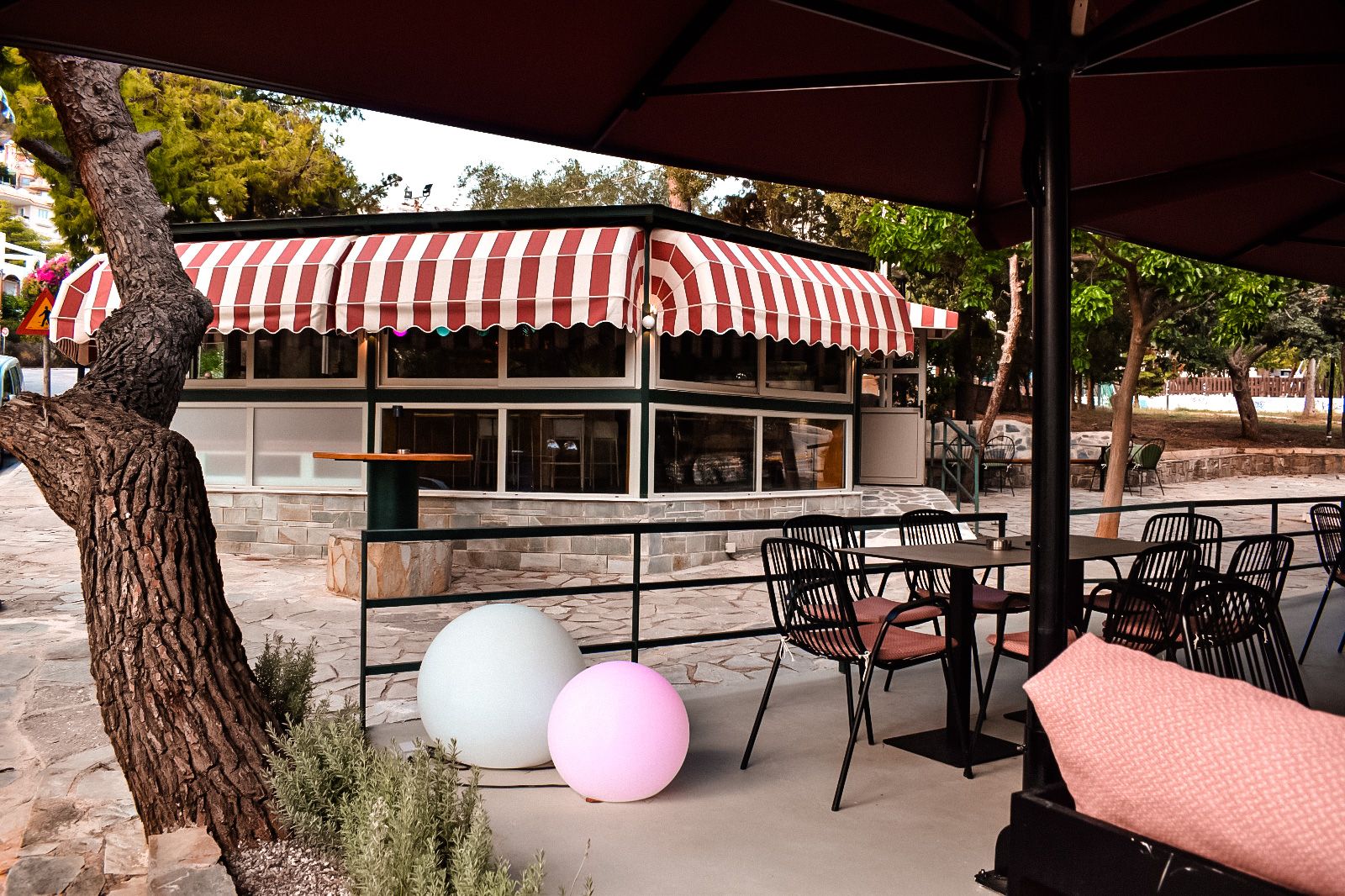 Ο χώρος απλός, λιτός, όπως ακριβώς ταιριάζει στο σημείο, με ορισμένες ωστόσο πιο παιχνιδιάρικες πινελιές, όπως οι πολύχρωμες μπάλες φωτός που ανάβουν το βράδυ και δημιουργούν μια υπέροχη ατμόσφαιρα ή η χαρακτηριστική τέντα που δίνει στο μαγαζί χαρακτήρα και μπρίο.