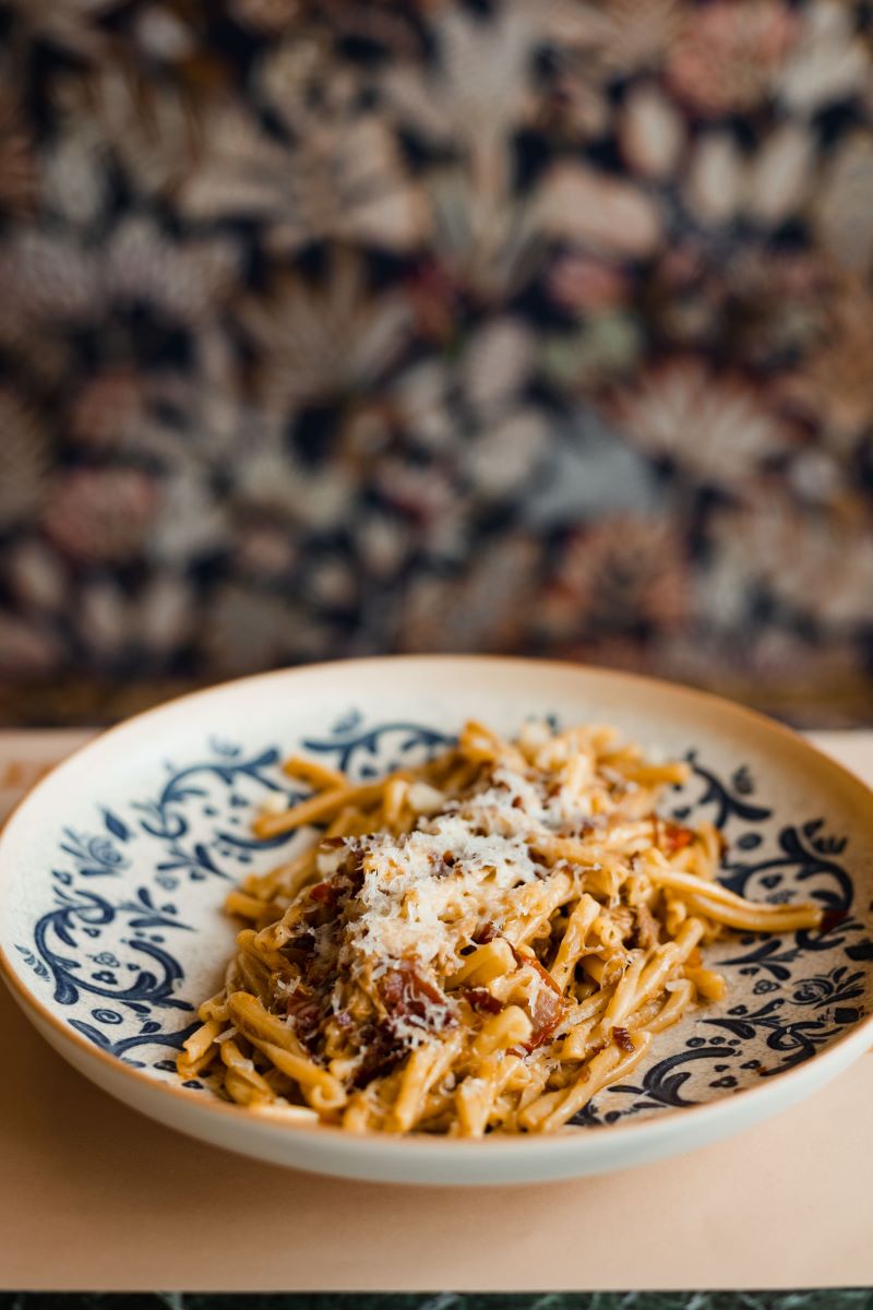 Οι χειροποίητες πίτες, όπως η χορτόπιτα με σπανάκι, καυκαλήθρες και σέσκουλα, φέτα Αρκαδίας και αρωματικό γιαούρτι φτιάχνονται καθημερινά με μεράκι, ενώ το μενού συμπληρώνουν τα γλυκά, όπως η πορτοκαλόπιτα με monte λευκής σοκολάτας, καραμελωμένο φουντούκι και παγωτό. Η λίστα κρασιών περιλαμβάνει 40 ετικέτες αποκλειστικά από Έλληνες παραγωγούς.