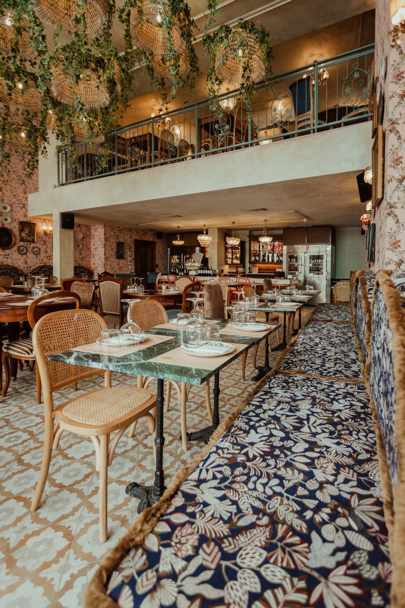 Ένα παλιό υφασματάδικο απο τις χρυσές εποχές του εμπορίου υφασμάτων έγινε πλέον ένα σύγχρονο ελληνικό εστιατόριο με χαρακτήρα και σεβασμό στην ελληνική κουζίνα. Τιμώντας την ιστορία του κτιρίου, ένα vintage έπιπλο στο οποίο έκοβαν τα πατρόν οι ράφτες, “ντύθηκε” με μάρμαρο από άκρη σε άκρη δημιουργώντας ένα μπαρ-πάσο που πάνω του υπάρχει ακόμα η παλιά ζυγαριά του μαγαζιού για τα ζύγια. Η διακόσμηση εμπνέεται από παλιές αστικές κατοικίες, με την αρχοντική σκάλα, τη φλοράλ ταπετσαρία, τα vintage διακοσμητικά, τα κεντήματα στα κάδρα και τα παλιά συλλεκτικά πιάτα να δημιουργούν μια νοσταλγική ατμόσφαιρα καθώς συνδυάζονται παράλληλα με σύγχρονα στοιχεία.