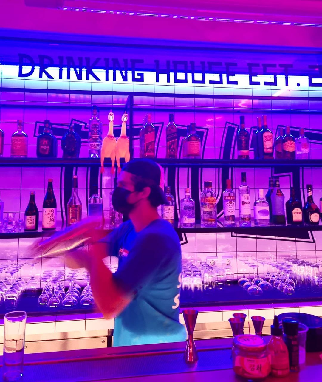 Neon χρώματα, ατμόσφαιρα που σε μεταφέρει στη Σιγκαπούρη, ένα καλάμι ψαρέματος, ένα φαναράκι, βιβλία μαγειρικής, ενυδρεία, ένα vintage σταθερό τηλέφωνο και άλλα στοιχεία της διακόσμησης που μας θυμίζουν κάποιο escape room στο οποίο ήρθαμε να λύσουμε γρίφους με τους φίλους μας. Και όμως, εκεί θα πιούμε cocktails με ασιατικά στοιχεία, σάκε, ετικέτες ουίσκι, τζιν, ρούμι από την Ασία αλλά και το παραδοσιακό baijiu και θα ακούσουμε από old school hip-hop, μέχρι soul και funk. Παρέα με το ποτό μας θα έχουμε την ευκαιρία να δοκιμάσουμε και instant noodles, σε διάφορες εκδοχές.